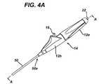 As previously indicated, thedevice10 can also include ahandle14 is located on theproximal end50aof theouter tube50 to facilitate manipulation and handling of thedevice10. Thehandle14 can have any configuration that allows a user to conveniently hold and operate thedevice10. As shown inFIGS. 4A-4C, thehandle14 is formed from first andsecond housing halves18,20 that mate together to form a substantially elongate generally cylindrical member. Thehandle14 can be adapted to facilitate the delivery of energy through thewire52 to theenergy emitter32. In the illustrated embodiment, thehandle14 includes aconnector22 that is adapted to couple thewire52 to an external energy source, such as a generator or an electrical outlet. The handle can also include a mechanism for activating energy delivery of the wire, such as a button or knob (not shown). Alternatively, an energy source (not shown), such as a battery operated high frequency, high voltage source that is in electrical communication with the wire, can be disposed within the handle.