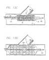 FIGS. 19A-19C are elevational views of a bifurcation in which a main-vessel stent is first implanted in the main vessel and a catheter assembly next deploys a proximal angled stent in a side-branch vessel.