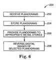 FIG. 6 is a flow diagram illustrating one embodiment of aprocess200 in accordance with the present invention for implementing planograms.Process200 begins at202 with receipt of a plurality of planograms, wherein each planogram of the plurality of planograms is associated with one retail store of a plurality of retail stores. Each planogram is associated with a plurality of products to be displayed for sale on one or more display fixtures within the associated store and includes a first digital image illustrating a respective position of each product on the one or more displays according to a first planogram orientation.