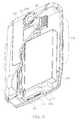 The mobile device is configured such that bothLEDs344 and354 turned off when a card is not being printed and the nib is not being used to sense coded data on an external surface. However, once the nib is extended and pressed onto a surface with sufficient force to close the switch, theLED344 is illuminated and theimage sensor346 commences capturing images.