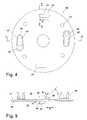 FIG. 4 is a top plan view of a rotating plate similar toFIG. 2 showing a different embodiment of fluid recovery members of the present disclosure;