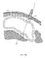 At this point in the percutaneous procedure (after entry into the stomach), thetissue grasping instrument200 ofFIG. 4A is inserted through theport306 with thejaws220 in the closed position (with or without a needle projecting in front of the instrument) and is passed through the anterior wall of thestomach302. When the jaws of the instrument are closed, the jaws define a sharp, dilating, and/or cutting configuration which can more easily advance through the stomach wall.