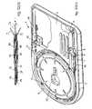Thewire71 of the pushingdevice8 is then threaded through thefilter element40, a proximal end of thewire71 is inserted through theloading device7 and extended partially through theinner catheter25. Thehandle70 is snapped into place in thechannel6 by theprojections9. In this configuration thefilter element40 is slidable over thewire71 but is normally positioned within thebath90, as illustrated inFIG. 1. Theprojections9 retain the pushingdevice8 in a position in which thedistal stop72 is spaced distally of thebath90, and so thedistal stop72 does not engage thefilter element40 in this storage configuration, as illustrated inFIG. 1.