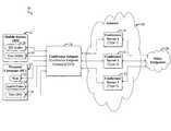 The conference-server bridge62 incorporates conference-bridging functionality that may be selectively activated by theadapter controller48 in response to one or more predetermined commands from one or more of theendpoints12,14. For the purposes of the present discussion, conference-bridging functionality may be functionality that enable combining conference sessions hosted by different conference servers, such as two or more of the conference servers18-22 ofFIG. 1, into a single conference.