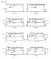 Subsequently, as shownFIGS. 26(b1) and (b2), theSTI11 is formed and ion implantation is conducted to form awell12. Furthermore, the channel is ion-implanted. In this step, for example, theSTI11 with a depth of 250 nm is formed. Then, lithography is carried out, and in the region to be an n-type MOSFET, a p-type dopant is ion-implanted (for example, monovalent boron at an acceleration energy of 150 keV and a dosage of 1.5×1013cm−2) to form awell12. Furthermore, a p-type dopant is ion-implanted (for example, monovalent boron at an acceleration energy of 30 keV and a dosage of 7×1012cm2) for ion implantation of the channel region. After the ion implantation, the resist is removed. Then, lithography is again executed, and in the region to be a p-type MOSFET, an n-type dopant is ion-implanted (for example, monovalent phosphorous at an acceleration energy of 350 keV and a dosage of 1.5×1013cm−2) to form awell12. Then, an n-type dopant is ion-implanted (for example, monovalent arsenic at an acceleration energy of 100 keV and a dosage of 2.8×1012cm−2) for ion implantation of the channel region. After the ion implantation, the resist is removed.