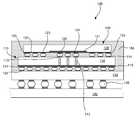 In section BB ofFIG. 2D, the contact pads ofarray224 are shown as being connected to daughter dieintegrated circuitry221. The contact pads ofarrays222, though, are not connected electrically to theintegrated circuitry221 of daughter die220. However, in an embodiment, the contact pads ofarrays222 are mechanically and thermally bonded to daughter diesubstrate230. In another embodiment of the present invention, the contact pads ofarrays222 are electrically and thermally bonded to a metal ground plane or power plane in thesubstrate230. By being coupled to a metal layer in the daughter die, the contact pads provide thermal conductivity better than that of contact pads bonded directly to semiconductor material.