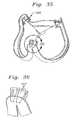 FIGS. 35 and 36 illustrate a stillfurther holder520 of the present invention having a single wire-like piece that conforms around the cusps and commissures of the valve522. Theholder520 includes cusp and commissure supports but only attaches to the valve522 at the three commissures, as indicated in the detail ofFIG. 36. Specifically, one or more lengths of suture may be tied to bent portions of the commissure supports of the holder, with two shown having relatively moreaccessible severing segments524 extending between the holder and valve. A separate handle or connecting member (not shown) may be used, or the holder may be removed using forceps.