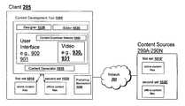 Referring now toFIG. 10A, an embodiment of thecontent development tool1000 is depicted. In brief overview, the content development tool orenvironment1000 provides adesigner tool1025 for designing one or more user interfaces, such as any ofuser interfaces900 and901 illustrated inFIGS. 9A-9D. Thedesigner tool1025 may also be used for designing video content for or via the user interface, such as streamedvideo930 or downloadedvideo931 content as illustrated inFIGS. 9A-9D. Additionally, via thedesigner1025 oreditor1030, thecontent development tool1000 provides a user interface element of acontent download selector1045 which provides a mechanism in an online user interface to download a corresponding offline user interface. Thecontent development environment1000 also includes aneditor tool1030 for managing and publishing content, such as via apublishing mechanism1040 over anetwork204 to acontent source290A-290N. Thecontent development environment1000 includes agenerator1035 for generating content files from the user interface designed and edited by thedesigner1025 andeditor1030. Thegenerator1035 generates a first set offiles1010 for online content and a second set offiles1020 for corresponding offline content, which may be substantially similar to the online content and include the download mechanism provided by thecontent download selector1045.