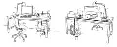 As shown inFIGS. 20A through 20C, the electricalpower supplying device1″ is ideally designed for support against a wall surface, given its low-profile housing, and provides external access to anexternal power receptacle36 andUSB power port37, while a bundle ofpower cables12 from electrical appliances enter/exit thepower cord portal13 provided on the side of the wall-mountable device. Thedevice1″ is capable of providing electrical power to a number of electrical appliances supported at the workstation ofFIGS. 18A and 18B, while concealing the power plugs and power adapter plugs of theappliances5 through11 deployed within its housing, and neatly managing the excess length of electrical power cords associated with the electrical appliances, in accordance with the principles of the prevent invention.