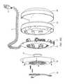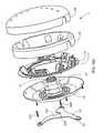 As shown inFIGS. 19A and 19B, the power-ring subassembly14″ comprises: a substantiallyplanar structure14B, having acentral aperture14A for passage and location of the cordmanagement dowel deck27″ supported on the bottom portion of thebase housing19″; a plurality of mountingbrackets42, formed or provided onplanar surface14B, for snap-fit mounting ofelectrical receptacles15, as well as electronicPC circuit boards16 and otherelectrical components17,36 and37 specified in the electrical circuit diagram ofFIG. 19B; and grooves, tracks orprojections43 provided on the surface ofplanar structure14B, for the mounting and routing ofelectrical conductors44 that interconnect together the electrical components in the circuit ofFIG. 21B, and supply electrical power thereto, during device operation.