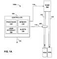 Controller104 includes aprocessor112, auser interface108, amemory114 andalerts106.Controller104 communicates withpump102 via aconnection118. Depending upon the application,controller104 may communicate with dispensing site105 via another connection (not shown). Signals generated bysensor200 are communicated to controller104 viaconnection116.Connection116 may include, for example, a standard I2C connection. However, any appropriate connection/communication channel known in the art may be used.Controller104 further includes at least oneexternal connection124 such as an internet, telephone, wireless or other connection for achieving external communication.