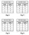 FIGS. 6 through 13 are tables of different forms of recoding that are used in respective embodiments of theFIG. 5 transmitter apparatus.