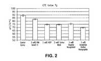 The thermal and electrical properties of composites made from these reinforcements also showed significant differences based on the reinforcements size concentrations and morphology. Thermal conductivity measurements, illustrated inFIG. 1, show that large exfoliated nanographite platelets can attain higher thermal conductivities than fibrous reinforcements or carbon black at the same concentration. Furthermore there is a corresponding reduction in the coefficient of thermal expansion, as illustrated inFIG. 2. Recent results at higher concentrations have reduced the coefficient of thermal expansion (CTE) to approximately forty.