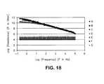 FIG. 18 is a graph illustrating the log (resistance) vs. log (frequency) of coated glass fibers. A=Raw glass fiber; B=1 wt % xGnP SDBS dipping coated glass fiber; C=1 wt % xGnP PSSS dipping coated glass fiber; D=1 wt % xGnP PDAC dipping coated glass fiber; E=1 wt % xGnP SDBS spray coated glass fiber; F=1 wt % xGnP PSSS spray coated glass fiber; G=1 wt % xGnP PDAC spray coated glass fiber.