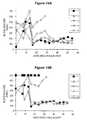 Example 3The ability of antisense oligonucleotide microspheres to reverse the symptoms of diabetes in early onset NOD mice was also tested. A timeline for these experiments is shown inFIG. 13A. NOD mice that had early onset were selected by testing blood glucose levels and identifying animals that had a blood glucose level greater than 400 mg/dL. The selected animals were given insulin pellets to normalize blood glucose levels to below 300 mg/dL. The insulin was withdrawn and a series of parenteral injections of microspheres was started. Six animals were injected twice weekly with microspheres containing the CD40, CD80 and CD86 antisense oligonucleotides. A further ten animals were injected with microspheres containing a mixture of oligonucleotides with scrambled sequences that are not directed against CD40, CD80 and/or CD86. Each injection for both groups of animals contained 50 μg of oligonucleotides in microspheres in 100 microliters of injection solution. Two of the animals in the scrambled group were euthanized before the end of the experiment due to poor physical condition. After the commencement of the injection protocol, blood glucose levels were sampled twice weekly. The animals were non-fasting during the experiment. The results are plotted inFIG. 12, wherein the indicator (1) signifies insulin pellet installation and indicator (2) signifies insulin pellet removal and initiation of MSP injections twice weekly. It is noted that the maximum blood glucose value reported inFIG. 12 is 700 mg/dL, which corresponds to the maximum reading of the meter used, it being understood that a 700 mg/dL data point indicates a blood glucose reading of 700 mg/dL or higher, All animals in the group that received the microspheres containing the mixture of CD40, CD80, CD86 antisense oligonucleotides (ASMSP1 through ASMSP6) showed significantly lower glucose levels than the animals that received the microspheres with scrambled oligonucleotides (SCRMSP1 through SCRMSP10). Furthermore, four of six animals in this ASMSP group showed a blood glucose level below 400 mg/dL, typically considered to be a threshold indicator of diabetes onset.