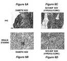 FIGS. 6aand6bshow sections of pancreatic tissue from mice that received no treatment and thus progress spontaneously to autoimmunity (diabetic NOD mice) stained with haemotoxylin and eosin (H+E;FIG. 6a) or stained for insulin (FIG. 6b).FIGS. 6cand6dshow sections of pancreatic tissue from mice treated with SCR-MSP formulations (injections started in parallel with the groups treated with specific AS-MSP). These sections were also stained with haemotoxylin and eosin (H+E;FIG. 6c) or stained for insulin (FIG. 6d). The SCR-MSP mice all developed diabetes.