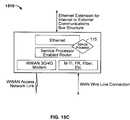 FIGS. 15A through 15C illustrate hardware diagrams of a device that include a service processor and a bus structure extension using intermediate modem or networking device combinations in accordance with various embodiments.