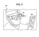In an embodiment, goggles or other eyewear may also project images into a user's oculars or provide a miniature screen attached to theeyewear210 and positioned in the user's field of vision to form a virtualpersonal display220. Thus,eyewear210 may be used to eliminate some displays in the healthcare environment. Additionally,eyewear210 may allow specific information to be targeted for display for specific users in the healthcare environment. For example, a nurse, an anesthesiologist, and a surgeon receive different information displayed on theirpersonal eyewear display220. For example, a surgeon may view image-guided surgery and PACS data while an anesthesiologist views EKG and dosage data. In an embodiment, each user may view customized information without turning to look at a display to select the information.