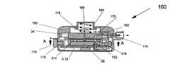 FIG. 15bshows a view along the line A-A of the inhaler at190 inFIG. 15aand shows the ratchet mechanism for rotating the blister pack310 (similar to that shown inFIGS. 12band14b).FIG. 15cshows an exploded perspective view ofinhaler190.Inhaler190 can also be modified to become a passive inhaler by removing thetelescoping button186 and thespring180 and providing one or more air holes in the stationary housing to allow air inflow.