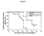 FIG. 27 is a Kaplan-Meier representation of the data shown inFIG. 26 wherein the percentage of mice in a treatment group exhibiting tumors less than 500 mm3[as calculated from digital caliper measurements of length and width of the tumors, using the following formula: volume=(length×width2)/2] is depicted.