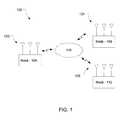 FIG. 1 illustrates awireless communication system100 in accordance with an embodiment of this invention. In this embodiment, thecommunication system100 is shown with nodes104,108, and112 communicatively coupled to one another via a sharedwireless medium116. The nodes104,108, and112 may access the sharedwireless medium116, hereinafter “medium116,” throughantenna structures120,124, and128, respectively.