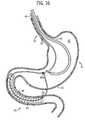 It will also be clear to one skilled in the art, after reading this disclosure, that the step of forming a closed loop with anchoringdevice42 may be accomplished in other ways. For example, anchoringdevice42 may be advanced as described inFIG. 1, but both ends of anchoringdevice42 may be located withinstomach lumen32 and held in place using two independent endoscopes (clamps). These ends may be attached together using similar means described above, e.g., adhesive, Velcro like material, knot, etc. Thus, one end will be attached to a portion of anchoringdevice42 as described above, but in this case, the portion will be the other end of anchoringdevice42. In this respect, there will be no residual portion of anchoring device to cut and remove. The specific steps and the order in which they are performed may vary to form the closed loop in accordance with the method of present invention.