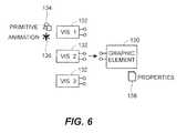 FIG. 7 depicts a section of a screen display showing a first property view associated with a graphic element;