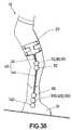 The runners (503,504) are linked by an articulated rigid member (507) that bends when the knee is bent. The cable (505) connects one runner (503) to the other runner (504) through the ends of the curved rails (501,502) in the following manner with referenceFIG. 51: