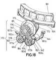 2) The shaft (177a) of the left free wheel bushing (178) and the left free wheel bushing (178) itself rotate in clockwise direction.