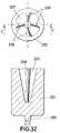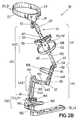 With reference toFIGS. 33 and 34, when the knee is not flexed, the upper end (45) of the lower linkage assembly (44) pushes a hub projection (205) placed on the outer low surface of the hub (201) and due to the action of a spring (204) pushing the projections (209) of the shaft (202) remains near the bottom of the cavity (207) in the hub (201). In this position, the path that the projections (209) can move between two nerves (208) is null as shown inFIG. 33.