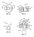 Plug portion64 has aslot78 and agroove80. Atab82 extends from the top surface ofplug portion64. Prior to insertion (or after partial insertion) ofplug64 intowheel62 in the direction shown by the arrow inFIG. 11, the non-needle-end of asuture strand86 may be inserted intoslot78 and, if desired, wrapped aroundgroove80 and back throughslot78.Plug64 is then inserted fully into opening72 ofwheel62 from the bottom, as shown inFIG. 11. As it is inserted, the plug'stab82 pushes the top of the wheel'smovable member74 radially away from the center ofopening72. When the plug'stab82 reaches aspace84 abovemovable member74,movable member74 moves back toward the center of opening72, snappingplug64 in place withinwheel62. In this position, the non-needle-end ofsuture strand86 is held firmly bysuture retainer60. The suture thread may be tensioned downward, as shown inFIG. 13.
