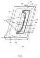 Referring to thetop view802 of thecartridge800,cavity820 includes a flat bottomperipheral portion822, abevelled portion824 extending from the flat bottom peripheral portion, and a flatupper portion826 surrounding the beveled portion. The array includes an outer periphery which rests against the flat bottomperipheral portion822. The bevelled portion aligns the chip onto the flat bottomperipheral portion822. As shown, thetop casing814 extends outside the middle and bottom casings,812 and810, respectively, to provide anonflush edge828. Thealignment structures816 and818, as well as the nonflush edge828, ensure proper orientation of the cartridge in the hybridization station, as well as other devices used in producing and reading polymer arrays. Surrounding mountingstructures816 and818 areannular recesses817 and819, respectively, which aid in guiding the cartridge onto complementary mounting structures on the various devices.