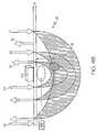 FIG. 4(b) depicts a configuration where thefirst emitters10 and thefirst detectors12 are disposed so as to be parallel to one another. In this configuration, thefirst emitters10 and thefirst detectors12 are generally perpendicular to the skin of the patient. In this configuration the light introduced into the tissue travels a crescent-like path, and thus may not impinge on inclusions that are closer to the skin.