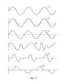 Waveforms1118-1120 depict variations where the stimulating waveform is generated having a largely smooth waveform, but having the additional feature where the interval between waveforms is set by varying a selectable delay, as would be used with the traditional biphasic pulse waveforms described previously. Inwaveform1118, the stimulating waveforms are segments of a sine wave separated in time (of course the same technique could be used for the truncated ramp, or other arbitrary morphologies).Waveform1120 shows a variation where the derivative in time of the waveform approaches zero as the amplitude approaches zero. Theparticular waveform1120 is known as a haversine pulse.