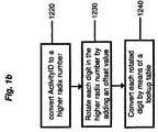 FIG. 1bdepicts the method by which the system creates a URLToken that is embedded by the system as an element within the unique tokenized schedule link (Web URL). The URLToken is an encoded representation of the integer ActivityID, wherein the encoding comprises random-looking non-sequential attributes, and allows for much higher number of activities to be represented within an easy-to-type five character number than a more standard representation of an integer ActivityID would allow. The method relies on conversion of theradix 10 ActivityID to a higher radix such asradix 30 as employed in the present embodiment. The first step in the method employed by the system is to convert the activityID (a decimal integer with radix 10) to a number represented with ahigher radix1220. Next, to provide an illusion of randomness, each digit in the higher radix number is “rotated” by adding an integer value. The rotation value applied by the system can be any integer, such as the least significant digit in the higher radix number as employed in the present embodiment. For example, if the least significant digit were 5, the converted value of the digit subject to rotation would be its initial value plus 5. The final step employed by the system to provide an illusion of randomness is to convert each rotated digit to a new value by mapping each rotated digit through one of several lookup tables where the values in each table are arranged in random order. For example, with six lookup tables as in the present embodiment, each rotated digit is converted to a mapped digit by applying one of the six lookup tables to each digit. The tables can be applied in any order, such as cycling through the tables one after another as in the present embodiment.