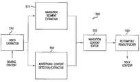 Thevideo extractor unit510 then forwards the extracted video portions of the source content with their corresponding relative locations within the source content to a navigationsegment extractor unit515. The navigationsegment extractor unit515 identifies and removes navigation segments from the received extracted video segments. Additionally, thenavigation segment extractor515 retains the association of the relative location of each extracted navigation segment within the original source content. The navigationsegment extractor unit515 then forwards the extracted navigation segments and their corresponding indexed locations from the original source content to a restamper/remultiplexer unit520.