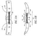 Referring back toFIG. 27B, in a preferred embodiment, thefemale interfit member142 comprises dual-flat prongs154,156 while themale interfit member144 comprises a singleflat prong158 configured to form an interfit between the dual-flat prongs154,156. This configuration of theimplant120 may be advantageous because it allows engagement of the twobrace arms122,124 without requiring a substantial degree of separation between thearms122,124, for initial engagement as is required with the embodiment depicted inFIGS. 29A and 29B. To facilitate alignment of thecomplementary prongs154,156,158 ofarms122,124, apivot pin159 or structure may be provided in the one of the interfit members and acomplementary pivot surface160 may be provided with the other interfit member. Thepivot pin159 or structure may be an integrally formed structure of the brace arm, or may be a screw, bolt or other fastener that is inserted through one or both bracearms122,124. The interfit between the female andmale interfit members142,144 may be affixed by inserting one or more screws throughgrooved lumens160 in the female and/ormale interfit members136,138.