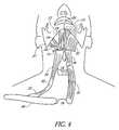 The position of the hyoid bone relative to the thyroid and cricoid cartilage is shown inFIGS. 2A and 2B. The hyoid bone is a U-shaped bone comprising abody21, twolesser horns22 and twogreater horns23, as a shown in a superior view inFIG. 2C. As shown inFIG. 3, at the pharyngeal level of the hyoid bone, the hyoid bone forms the anterior portion of the pharynx while a pair ofmiddle constrictor muscles24 forms the remaining portions of the airway. The muscle fibers of themiddle constrictor muscles24 originate from the greater23 andlesser horns22 of thehyoid bone15 and fan out posteriorly, inferiorly and superiorly to the posterior midline pharynx (not shown). Astylohyoid ligament25 attaches from the cranium to the hyoid bone.FIG. 4 illustrates the attachments of the extrinsic muscles of the larynx. The left side of the illustration inFIG. 4 depicts the anatomy of the superficial musculature and the right side depicts the deeper musculature. Theposterior belly26 of the digastric muscle originates from themastoid process27 and attaches to thelesser horn22 of thehyoid bone15 as a tendon and then attaches as ananterior belly28 to themandible13. Thestylohyoid muscle29 originates from the styloid process (not shown) of the cranium and then splits into two portions upon inserting adjacent to the lesser horn of thehyoid bone15 to allow the digastric muscle to pass anteriorly. Deep to thedigastric26,28 and stylohyoid29 muscles are thehyoglossus muscles30, attaching to the superior surfaces of thegreater horns23 of thehyoid bone15 and inserting into the lateral areas of thetongue9. Further deep is themylohyoid muscle31, a sheet of muscle that courses between thehyoid bone15 and the lateral interior sides of themandible13, forming a portion of the musculature of the floor of the mouth along with thegeniohyoid muscle20. These muscles move thehyoid bone15 andtongue9 superiorly and anteriorly, and are involved in the act of swallowing. Overlying most of the antero-lateral neck is the platysma muscle (not shown) that originates over the upper anterior chest and inserts over the anterior surfaces of themandible13.