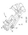The brace retaining structure on the other clamp member, if any, may have the same or a different configuration. In the embodiment of the invention provided inFIGS. 32A and 32B, thebrace retaining structure222 on theclamp member204 comprises amovable toe grip262 that may be manipulated by anactuator264 to slide thetoe grip262 longitudinally within thedistal end214 of theclamp member204. Thetoe grip262 andactuator264 are depicted in a cut-away view inFIG. 37A. Thetoe grip262 comprises a pronged structure configured to releasably engage another structure between theprongs266. Thetoe grip262 has anactuator264 to allow the operator to slide thetoe grip262 with respect to theclamp member204. In this particular embodiment, theposterior screw interface132 of thehyoid brace component124 has arecess268 or narrowed neck which may be engaged by theprongs266 of thetoe grip structure262. To release the engagedhyoid brace component124, thetoe grip262 is pulled away from therecess268 on thescrew interface132 ofhyoid brace component124 by theactuator264.FIG. 37B illustrates the engagement of thetoe grip262 to recess268 on thescrew interface132 of thehyoid arm124 fromFIG. 27A.