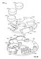 Referring toFIG. 6E, thePCB assembly644 is described in greater detail. As illustrated inFIG. 6E, thePCB assembly644 includes aPCB670 and aPCB casing672. ThePCB670 includesbattery contacts673 for engaging batteries674 (e.g., LR44 batteries, 1.5 v). When thereed switch610 is closed by the moving of the magnet in theslider608, current is allowed to flow from thebatteries674 through circuitry (not shown) on thePCB670 to drive the motor611 (e.g., Namiki 6CH-1201WL-0; MAX1749 Vibrator Motor Driver SOT23-5 package). An eccentric (e.g., off balance)weight676 is attached to an end of themotor611 shaft. When themotor611 is driven, theeccentric weight676 rotates thereby generating a vibration.Serpentine walls678 formed on thePCB casing672 definewells679 that are configured to receive thebatteries674. In addition,jaws680 formed on thePCB casing672 are configured to receive and secure themotor611.