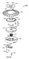 Referring toFIG. 6D, thePCB housing602 is described in greater detail. As illustrated inFIG. 6D, thePCB housing602 includes awheel640, abutton642, atop cap643, aPCB assembly644, and aPCB casing646. Anopening647 in thewheel640 is configured to receive thetop cap643. When assembled, the wheel rests atop thebutton642 such that teeth on thebutton642 engage corresponding teeth (not shown) on the underside of thewheel640, allowing thewheel640 to be turned in one direction but not the other.Slots649 in thetop cap643 are configured to receivevertical extensions650 that extend upward from thebutton642, andcompression spring651, which rests around acolumn652 that extends from thePCB casing646 and which extends through anopening653 defined in thePCB assembly644, is configured to apply a force on thebutton642 such that thevertical extensions650 from thebutton642 are maintained within theslots649 in thetop cap643. When thevertical extensions650 from thebutton642 are depressed, thecompression spring651 compresses, causing theteeth648 on thebutton642 to disengage the corresponding teeth (not shown) on thewheel640 allowing thewheel640 to be turned freely in both directions.