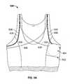 From the left armpit or axillary region of thebra500, thechannel506 proceeds along the upper back of thebra500 into the region of a wearer's right scapula or shoulder blade, drapes over the right shoulder of theshirt500, and loops under the right armpit or axillary region of thebra500. From the right armpit or axillary region of thebra500, thechannel506 proceeds along the upper back of thebra500 into the region of a wearer's left scapula or shoulder blade, drapes over the left shoulder of thebra500, and returns to the left armpit or axillary region of thebra500. Numerous different techniques may be employed to weave thechannel506 into thebra500. For example, one or more pieces of fabric (or other material), may be sewn (or otherwise fastened or adhered) onto a surface of thebra500 to form thechannel506 between the supplemental fabric and the fabric of thebra500. In order to best conceal thechannel506, it may be desirable to form the channel on the interior surface of thebra500.