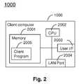 FIG. 2 illustrates an example of aclient computer1000 in the computer system ofFIG. 1. TheCPU2002 executes theclient program2005 in thememory2001. Theclient program2005 communicates with thestorage system1003 via theLAN port2004 to read and write files by sending HTTP requests and receiving HTTP responses.