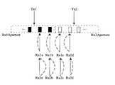 To obtain a desired lateral resolution while saving cost, only half aperture is used for receiving a transmit beam. As shown inFIG. 4, one half aperture, the half of the receive aperture Rx1Aperture, is used to receive the Tx1 transmission, the array elements being indicated by the dark solid rectangles. Another half aperture, the half of the receive aperture Rx2Aperture, is used to receive the Tx2 transmission, indicated by rectangle with black sides. These two half apertures form a complete receive aperture, the center of which is at the midpoint of the area where all receive lines are distributed.