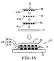 Assume that theceramic substrate14 and the printedwiring substrate11 suffer from a thermal expansion, respectively. As shown inFIG. 14, thefirst film37 is supposed to expand in unison with the expansion of theceramic substrate14 of thecomponent12 while thesecond film38 is supposed to expand in unison with the expansion of the printedwiring substrate11 in this case. Theadhesive layer39 serves to allow a sliding movement between the first andsecond films37,38. A natural thermal expansion can be accepted in the first andsecond films37,38, respectively, irrespective of the difference in the thermal expansion coefficients. No shearing stress is induced in the solder bumps13a,13b. The stacked solder bumps13a,13bwith theinterposer substrate36 interposed therebetween can absorb a remarkable shearing stress The levels of the stacked solder bumps13 can accordingly be reduced. In this embodiment, vias40 are preferably made of an elastic and electrically conductive material, since the aforementioned sliding movement cannot be achieved between the first andsecond films37,38 without deformation of thevias40.