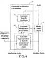 Although the calculation processes ordevices6,8 and10 of theFIG. 1 example (and the processes ordevices12,14,10′ in theFIG. 2 example,6,14,10″ in theFIG. 3 example, and8,12,10′″ in theFIG. 4 example) are shown schematically and described as separate, this is for purposes of explanation only. It will be understood that ones or all of these processes or devices may be combined in a single process or device or combined variously in multiple processes or devices. For example, in the arrangement ofFIG. 9 below, a feed-forward topology as in the example ofFIG. 1, the process or device that calculates modification parameters does so in response to the smoothed excitation derived from the audio signal and a target specific loudness. In theFIG. 9 example, the device or process that calculates modification parameters implicitly calculates specific loudness of the audio signal.