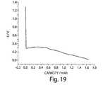 The cells were discharged galvanostatically using a Maccor 4300 battery tester (Maccor). The cell made using 0.10 mm thick tin foil was discharged at 0.4178 mA to 0.01V. The discharge capacity was 1.65 mAh (4% of the theoretical discharge capacity). The discharge profile for this device is shown inFIG. 19. Upon disassembly, the bimorph electrode was observed to have “curled” at all free edges, demonstrating severe morphing.
