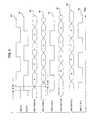 FIGS. 8A and 8B are a diagram of the operations performed by the master device to calibrate the internal receive clock in each of the slave devices. Initially, atblocks201 and203, indices i, j and k are reset. As with transmit timing calibration, index i represents the slave being calibrated, j represents an offset into a capture sequence and k represents the phase offset being tested. Atblock205, the master device outputs a calibration receive command (CAL RCV) to the ithslave device (e.g., via out-of-band signaling). Atblock207, the master device outputs an M-bit test sequence (TS) to slave(i). As discussed below, the calibration state machine within the slave device responds to the CAL RCV command by capturing an N-bit capture sequence via the high-speed signaling path, then transmitting the capture sequence to the master device (e.g., via out-of-band signaling if the slave transmit timing calibration has not been completed). Accordingly, atblock209 the master device receives an N-bit capture sequence that should include an accurate representation of the test sequence for at least some setting of the slave device's receive phase offset register. As with the transmit timing calibration discussed above, the value of N is preferably larger than M due to the uncertainty of the data flight time on the high-speed signaling path between the master device and slave(i).