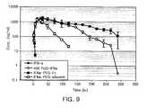 FIG. 9 is a graph showing the results of pharmacokinetic analysis of a native IFNα, an IFNα-40K PEG complex, an IFNα-PEG-albumin conjugate and an IFNα-PEG-Fc conjugate;
