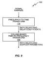 FIG. 9 provides aprocess100 for determining path delays and Doppler parameters according to one exemplary embodiment of the Ser. No. 12/478,473 invention. Broadly,process100 includes applying a frequency-to-time transform to a plurality of received signal samples corresponding to a plurality of frequencies (e.g., OFDM signal samples in an OFDM symbol) to determine a set of non-equally spaced path delays and a set of associated complex delay coefficients (block110). Each of the non-equally spaced path delays and its associated complex delay coefficient correspond to one or more scattering objects of the wireless communication channel. The complex delay coefficients and path delays are determined for multiple OFDM symbols in an evaluation period to provide a matrix of complex delay coefficients. The complex delay coefficients in a given column of the matrix correspond to a given path delay in the set of non-equally spaced path delays, and the complex delay coefficients in a given row correspond to a given OFDM symbol in the evaluation period.
